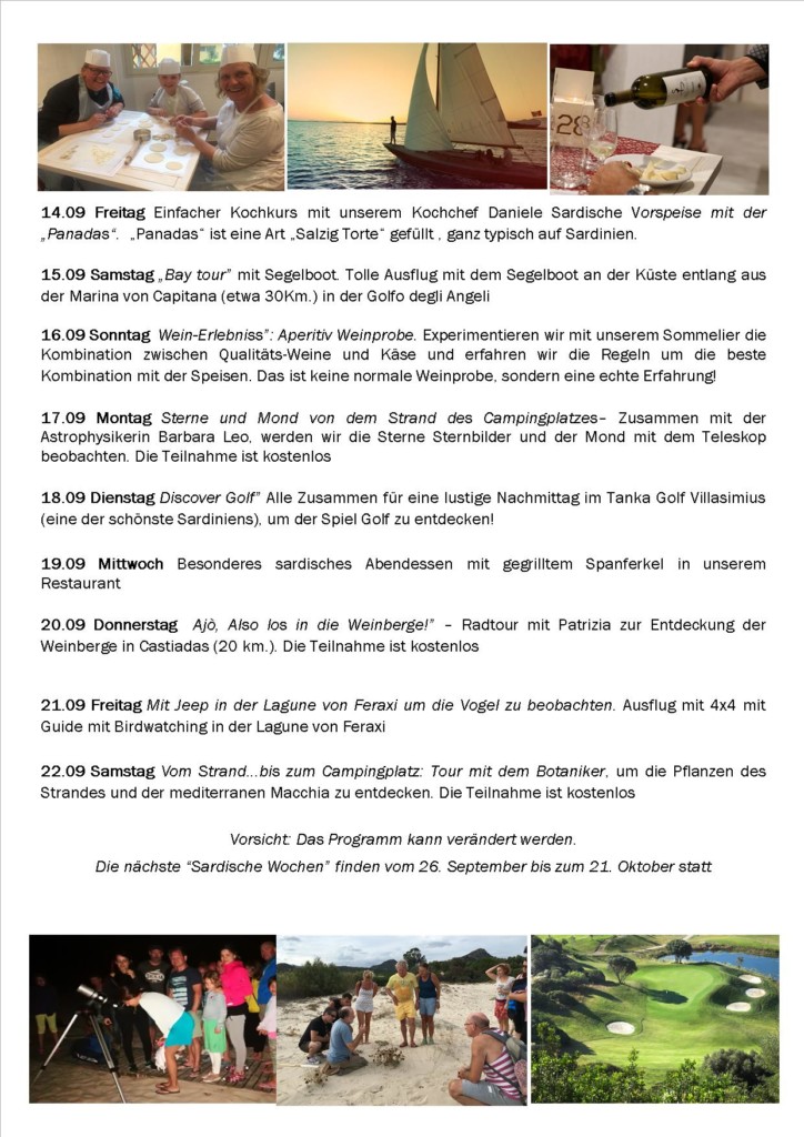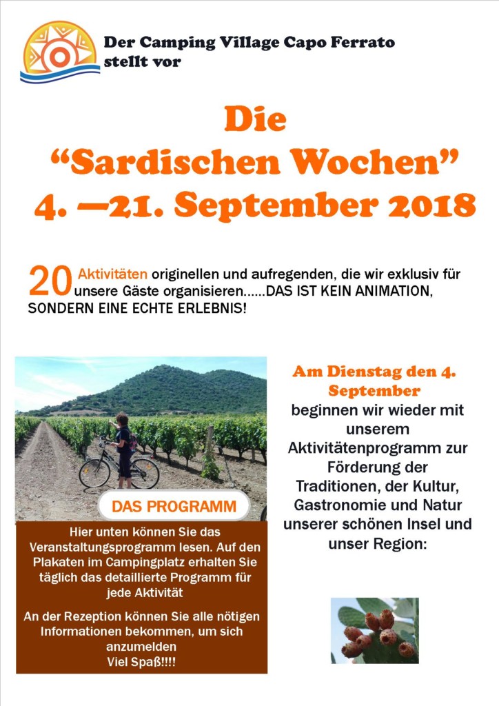 Von dem 4. bis zum 21. September und vom 26. September bis zum 21. Oktober voller Events mit der Herbst Ausgabe von der „Sardischen Wochen“!