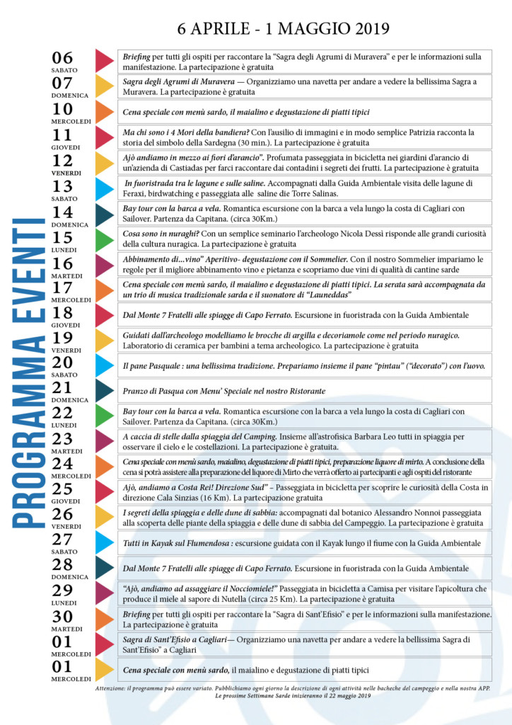 Le prossime SETTIMANE SARDE saranno: