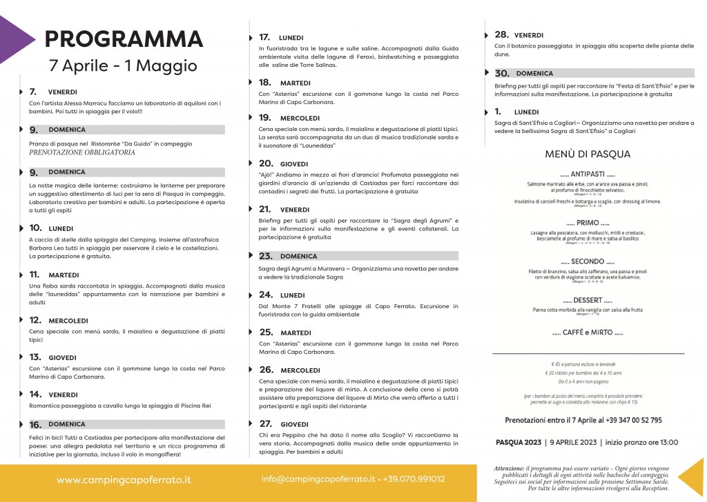 Le SETTIMANE SARDE di Aprile 2024 si aprono con il programma dei giorni di Pasqua. Troverai in queste pagine eventi il programma completo!