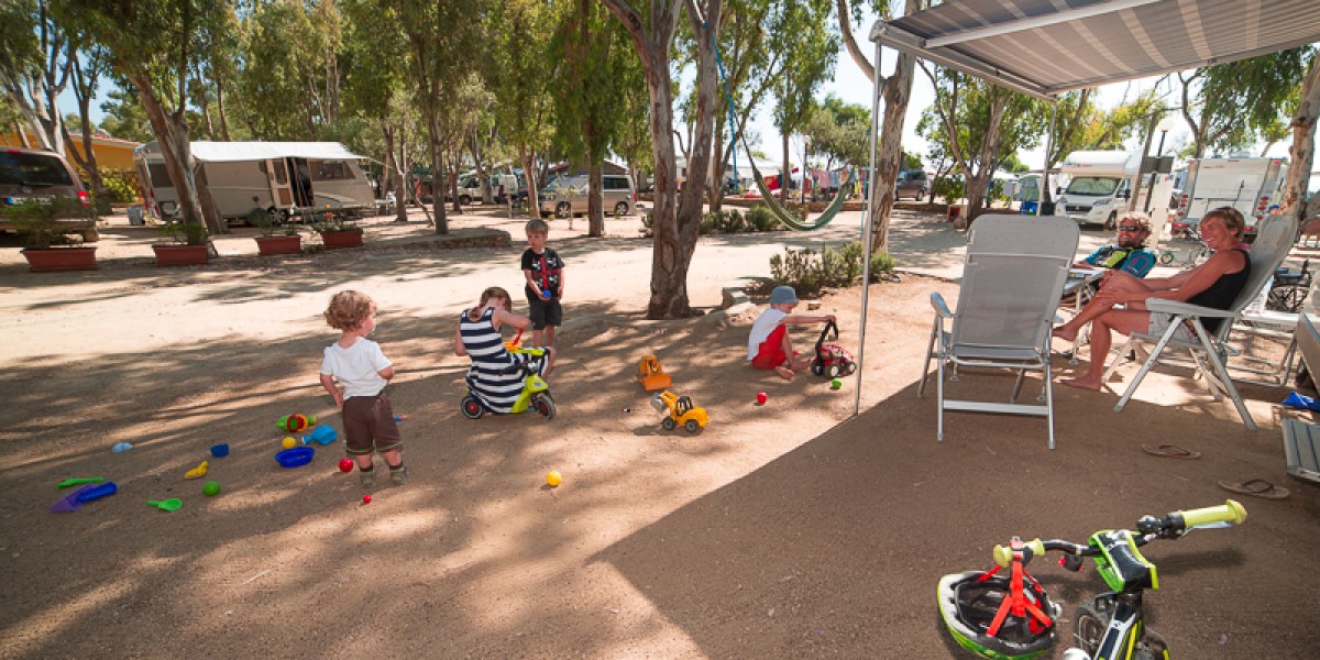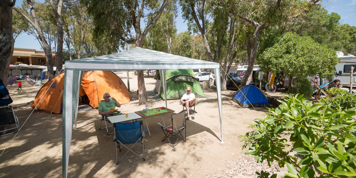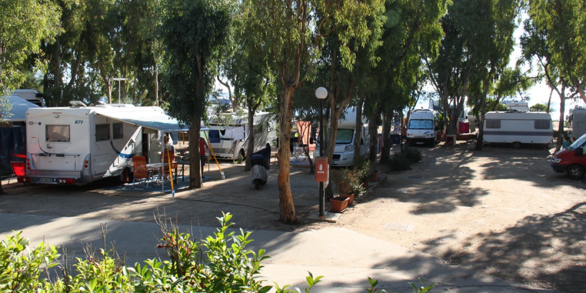 Tutto il villaggio camping si estende parallelamente alla spiaggia, pertanto, anche questa tipologia di piazzole si trova a pochi metri dalle uscite mare e in buona parte gode di scorci panoramici. Le alte piante di eucalipto e mimosa creano un ombreggio diffuso.